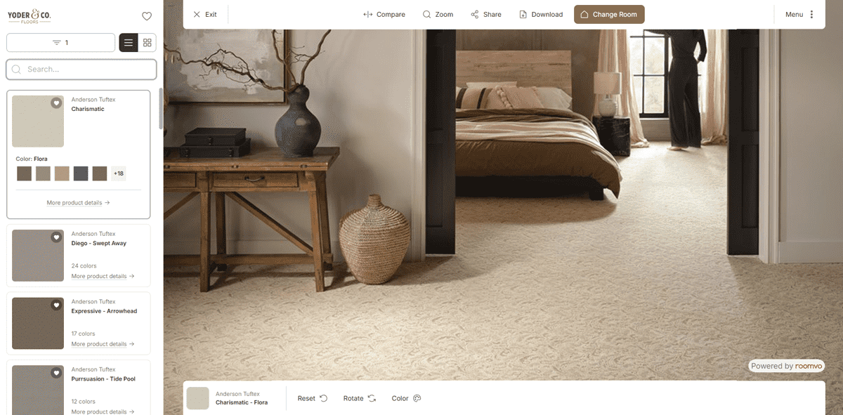 Try out different colors, textures, and flooring styles in your own home with our room visualizer.